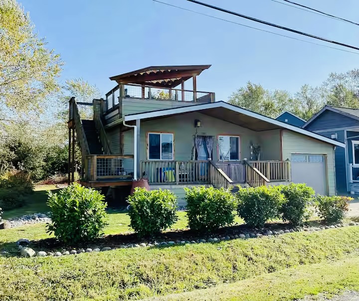 Enjoy this beautiful home right on the water! It has 3 bedrooms, sleeps 9, and features a full kitchen, as well as kayaks for your use. Whether you are taking the family out for a vacation or looking for a peaceful place to relax by the ocean all year long, Birch Bay Bungalow is the perfect place for you! Book through VRBO or Airbnb with the link below.