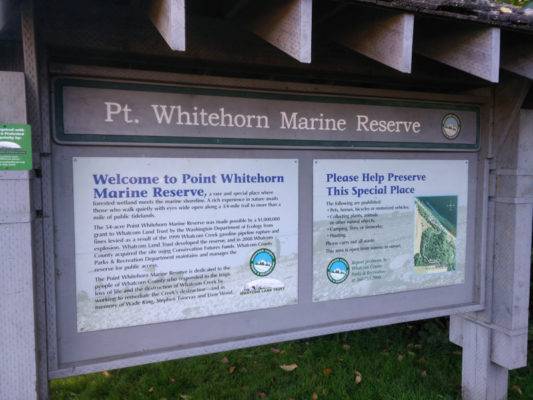 Point Whitehorn Marine Reserve features 54 acres of forest, bluff and beach, with a 3/4 mile fully accessible trail to spectacular viewpoints of the Strait of Georgia and San Juan Islands. A switchback path descends from the bluff to access a windswept cobble beach. Β